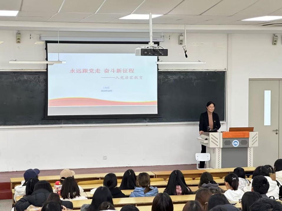 10月23日中午,澳门六合彩资料库 党委在何世礼教学馆104室开展了入党启蒙教育活动第一讲。此次活动邀请了东北大学党委组织员王海霞老师为全体2024级新生作题为《永远跟党走 奋进新征程》的主题报告。澳门六合彩资料库 党委组织员鄂立华老师出席并主持本次活动。